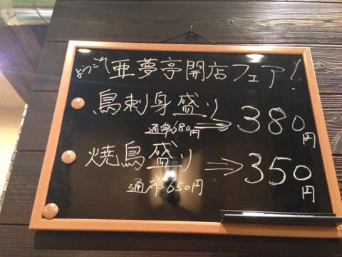 夜のお得なカウンターセット!!「亜夢亭(あむてい)」