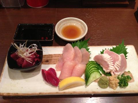 焼鳥屋さんに、刺身があるとやっぱりよいですね。