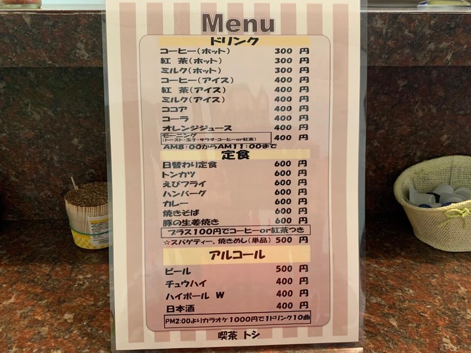 新価格のメニュー表です。8時から10時半になります。