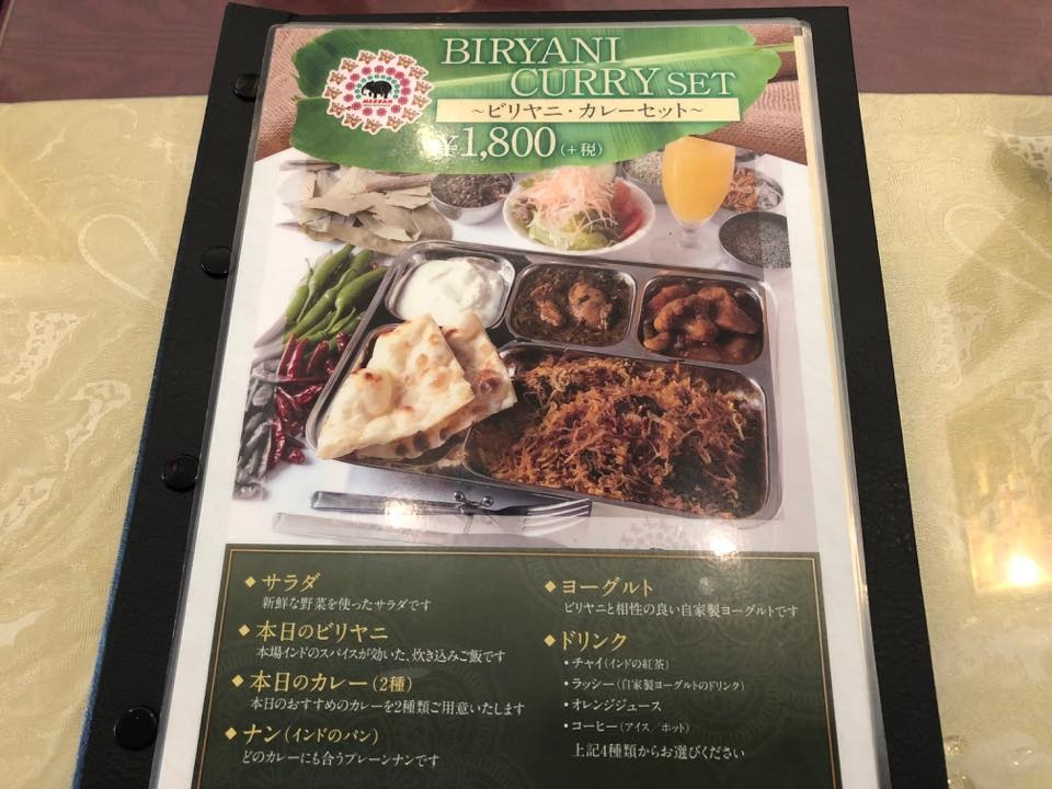 ビリヤニ・カレーセット1800円税別。ランチでも可能です。