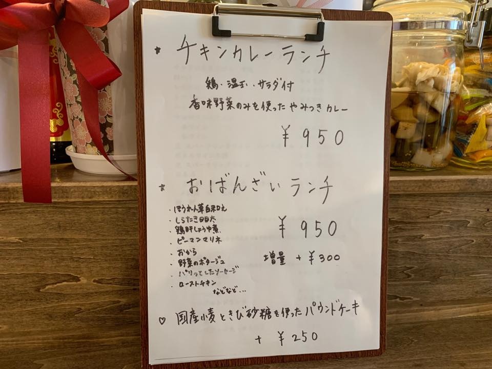 チキンカレーランチ950円。香味野菜のみを使ったやみつきカレーとあります。