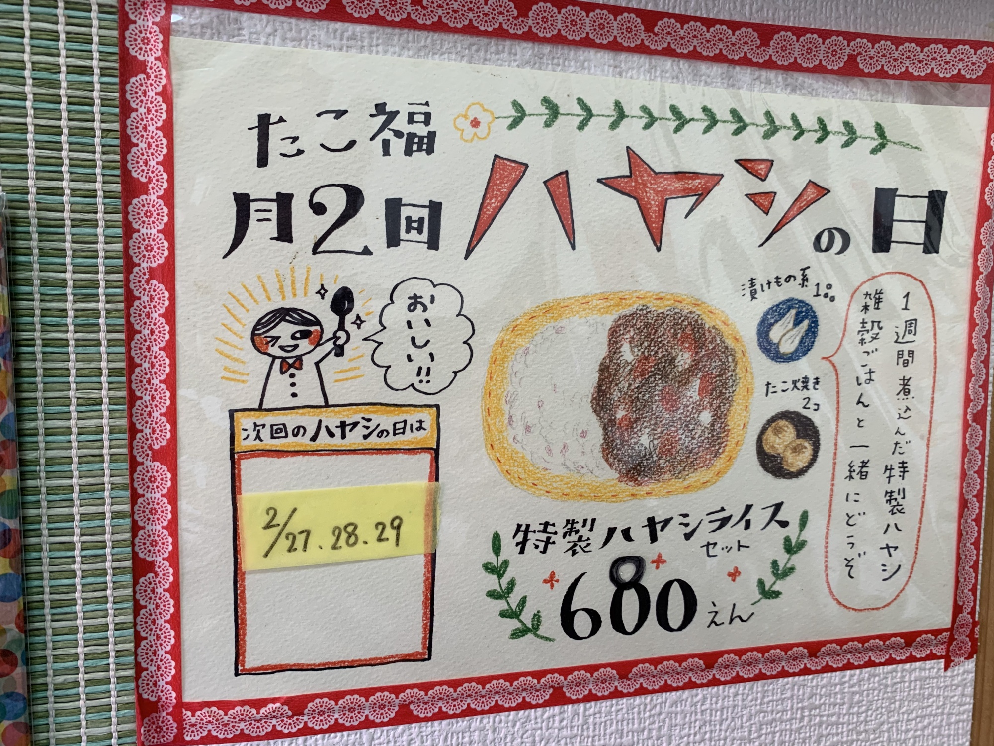 たこ福月2回ハヤシの日。